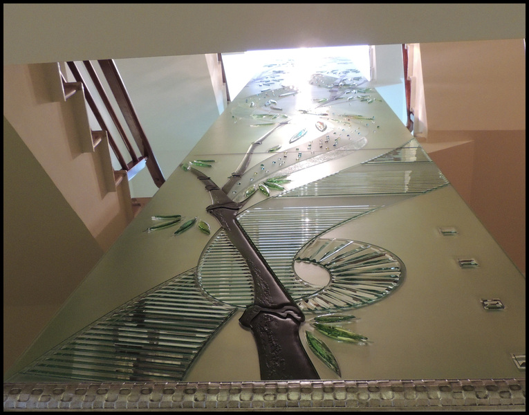 多麼氣勢磅礡的天井設計,高度具有四層樓高呢,使用的是晶鑽玻璃喔。想擁有隱居山林,盡情感受大自然嗎,彩雕玻璃設計能夠滿足您的期望喔。是否覺得牆面過於單調呢,運用窯燒玻璃為牆面裝飾是不是讓空間整個活躍起來呢。想置身於沙灘大海中嗎,輸出玻璃給你仿真的感受。想讓家更為華麗莊重嗎,鑲嵌玻璃有不同的圖騰樣式可供選擇喔。